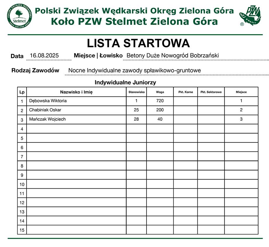 2 Spławikowe GPP U-15 2023