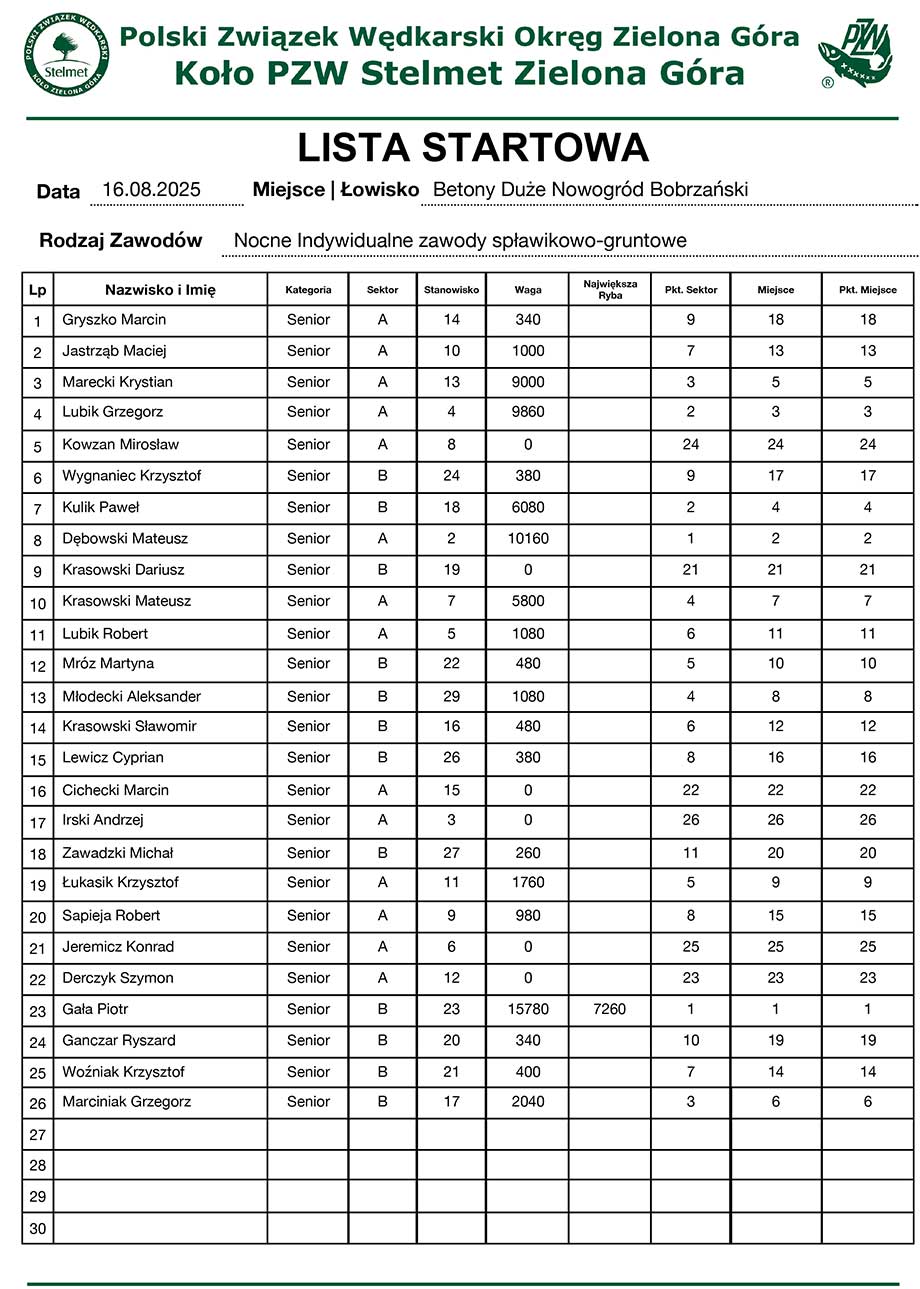 2 Spławikowe GPP seniorów, kobiet, U25 2023